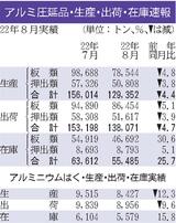 8月のアルミ圧延品出荷/4.7%減、13万8071トン