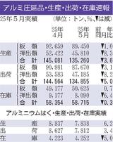 5月のアルミ二次合金生産/4カ月連続減、5万2875トン
