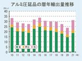 21年のアルミ圧延品輸出量/3割増、6年ぶり増加