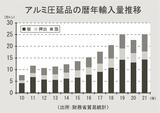 店売り向けアルミ圧延品出荷/21年は2割増、押出製品がけん引