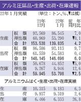 1月のアルミ圧延品出荷/6%増、14万6696トン
