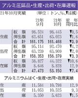 10月のアルミ圧延品出荷/9カ月ぶり減、15万6400トン