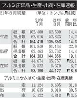8月のアルミ二次合金生産/21%増の5万5000トン