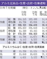 アルミ新地金7月末港湾在庫/11%減の27万トン