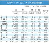 1~6月のアルミ製品総需要/15%増の202万7200トン/車向け回復、2年ぶり200万トン超