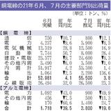 伸銅品/7月生産量、49%増/コロナ禍前の水準回復