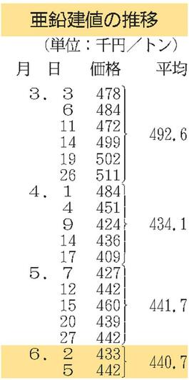 三井金属、亜鉛建値9000円上げ