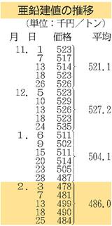 三井金属、亜鉛建値6000円下げ