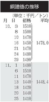 建値/JX金属、銅3万円下げ/三菱マテ、鉛6000円上げ