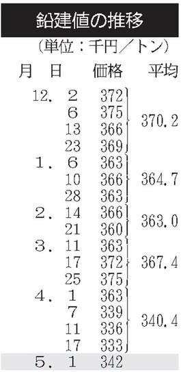 三菱マテ、鉛建値9000円上げ