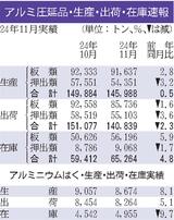 11月のアルミ二次合金生産/4カ月連続減、6万770トン