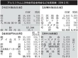 2月のアルミ二次合金生産/2カ月ぶり減、5万7244トン