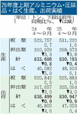 アルミ圧延品出荷/4~9月期は微減、83万947トン/缶材、建設用押出材が不調