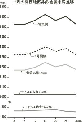 非鉄月間市況/2月/関西地区/銅・アルミ、底堅い地合い/アルミ大板は横ばい