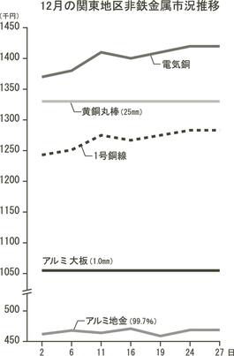 非鉄月間市況/12月/関東地区/電気銅などレンジ相場/円安が下値支える展開