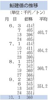 建値/三菱マテ、鉛9000円上げ/三井金属、亜鉛6000円上げ