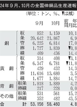 伸銅品の10月品目別生産量/14品種中、11品種が増加