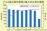 アルミ板製品/上期輸入比率、最高の13・4%/内需縮小、入着量高止まり/円高進めば増勢に拍車も