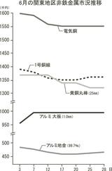 非鉄月間市況/6月/関東地区/銅類、高水準も上値重い/アルミ大板は上伸
