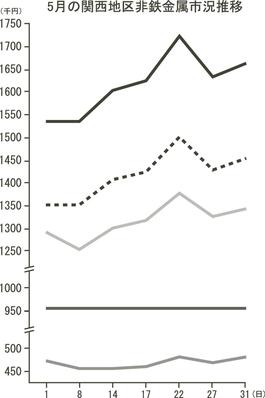 非鉄月間市況/5月/関西地区/電気銅建値175万円/過去最高値を大幅更新