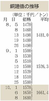 JX金属、銅建値3万円上げ/今週10万円超値上がり