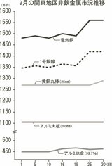 関東地区非鉄月間市況/9月/関東地区/電気銅など年初来高値/アルミ地金も5カ月ぶり高値圏