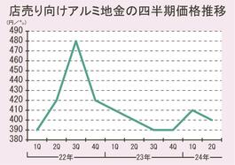 店売り向けアルミ地金価格/1~3月期比10円安の400円/4~6月積み