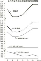非鉄月間市況/2月/関西地区/銅類、8カ月ぶり高値圏/アルミ地金は軟調含み