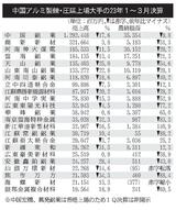 中国のアルミ製錬・圧延大手23社/1~3月期、5社のみ純益増/価格下落、需要停滞映す