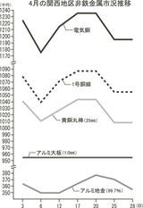 非鉄月間市況/4月/関西地区/銅類、高値圏キープ/アルミ地金、月末に気配弱める