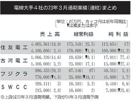 電線大手4社の23年3月期/3社経常増益、エネルギー関連堅調
