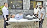 ワンタッチで担架に早変わりする看板/草津市役所のロビーに設置/クラウドナイン