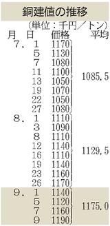 黄銅棒原料購入値/18円上げの873円/日本伸銅