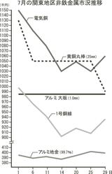 非鉄月間市況/7月/関東地区/電気銅、110万円割れ/アルミ大板はキロ60円高