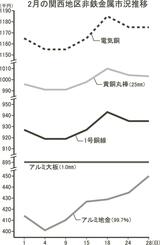 非鉄月間市況/2月/関西地区/電気銅、高値圏続く/アルミ地金は右肩上がり